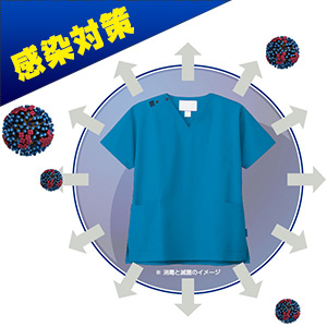 次亜塩素酸ナトリウムでの消毒・漂白にも耐え、限りなく色落ちしない。厚生労働省の消毒と滅菌の手引きで推奨されている2つの方法が実現可能!院内感染対策にも有効なため、現在拡大中の新型コロナウイルス他様々な感染症対策におすすめです。