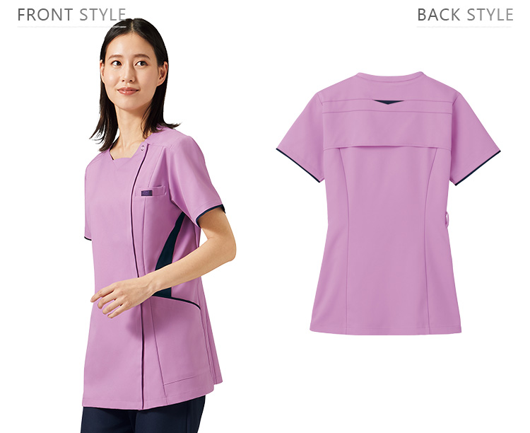 呼吸するようなスクラブが誕生しました。背中にベンチレーション機能を施し通気性のあるメッシュ生地を裏地に採用することで、空気が抜けるだけでなく、熱がこもらないので、空気循環を促してくれて、一日中着用していても、ストレスなく快適にお仕事していただけます。 スポーティーなダークネイビー配色のラインをテープ状に配置することで、ウエストのくびれを感じさせ元気で健康的な印象のレディースジップスクラブ。