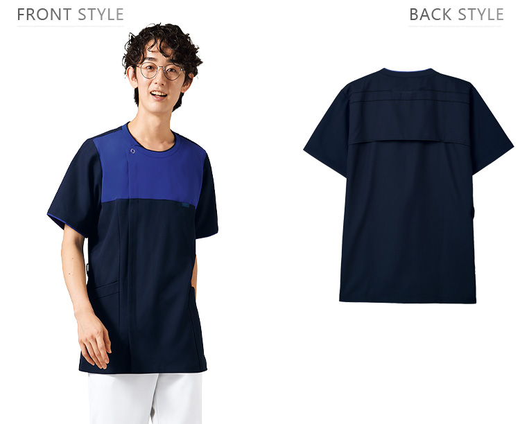 呼吸するようなスクラブが誕生しました。背中にベンチレーション機能を施し通気性のあるメッシュ生地を裏地に採用することで、空気が抜けるだけでなく、熱がこもらないので、空気循環を促してくれて、一日中着用していても、ストレスなく快適にお仕事していただけます。 同型のレディスジップスクラブ(7079SC)と合わせて採用することで、施設内に一体感を持たせた、コーディネートが可能です