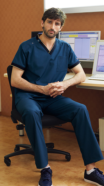 アメリカ発のスクラブを小柄な日本人体型にフィットするようにリニューアル。 ジャストフィットサイズのスクラブが軽快な現場ワークをサポートします。