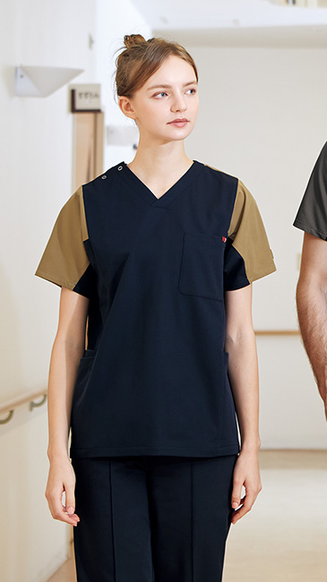アメリカ発のスクラブを小柄な日本人体型にフィットするようにリニューアル。 ジャストフィットサイズのスクラブが軽快な現場ワークをサポートします。