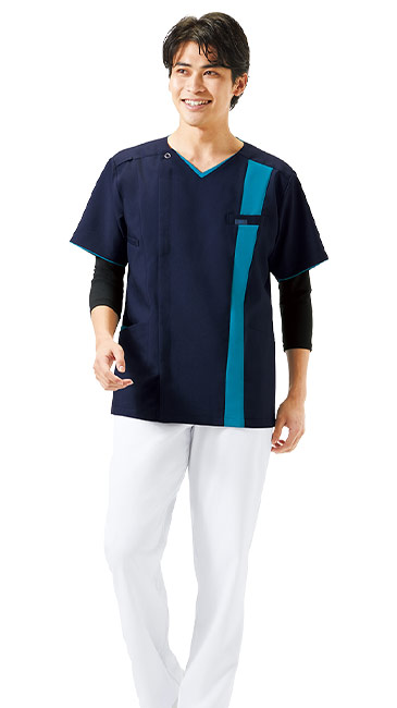 ジップスクラブ®シリーズの中でも人気のシリーズに、カチオン染料を使用した色落ちに強いスクラブが新登場!印象的な縦の切り替えはスポーティーでアクティブな印象を与えます。おしゃれでカッコイイスクラブは、前ファスナーなので脱着がしやすいのが嬉しい。ハリコシのあるサラリとした着心地の男性用スクラブ。