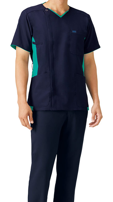 ジップスクラブ®シリーズの中でも人気のシリーズに、カチオン染料を使用した色落ちに強いスクラブが新登場!印象的な縦の切り替えはスポーティーでアクティブな印象を与えます。両脇の切り替えカラーが全体を引き締めた印象にしてくれる、スマートでカッコイイスクラブは、前ファスナーなので脱着がしやすいのが嬉しい。ハリコシのあるサラリとした着心地の男性用スクラブ。
