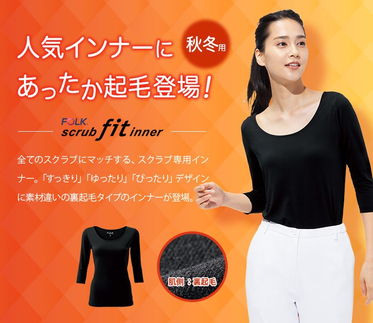 人気のスクラ ブ専用インナーに、暖かさをアップさせた裏起毛素材の、ポカポカの女性用スクラ ブインナーが仲間入り。身幅は程よいゆるみが空気層を作り、動きやすく、起毛になって更に暖かくなりました。 スクラ ブにマッチした美しいデコルテラインをデザインしました。医療現場で2年間の取材を元に導き出した他にはない理想の形。手洗いや袖をめくる回数も研究し、理想的な袖丈と袖口の強度を実現。スクラ ブ一枚では少し寒さを感じる方におすすめの女性用インナーカットソーです。