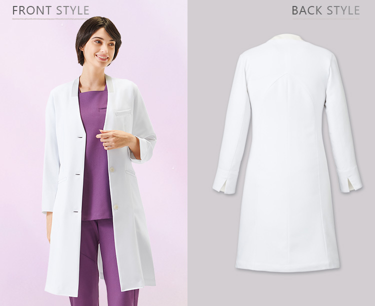 動きやすさと美しさの両立を実現した、ワコールHIコレクションシリーズのドクターコート。マットで透けにくく高級感のある質感の素材。滑らかでパウダリーな肌当たりが心地よいノーカラードクターコート。ドレープ感が美しく女性の魅力を最大限に引き出します。