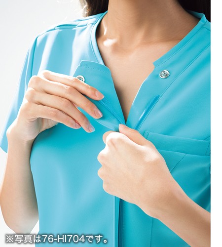 フォーク独自に考案した機能で、かぶらずに羽織って着られるZIPスクラブシリーズ。 スピーディに脱ぎ着ができるだけでなく、着脱時に化粧や髪型が乱れるのを防ぎます。機能的な携帯電話ポケット&肩ループ