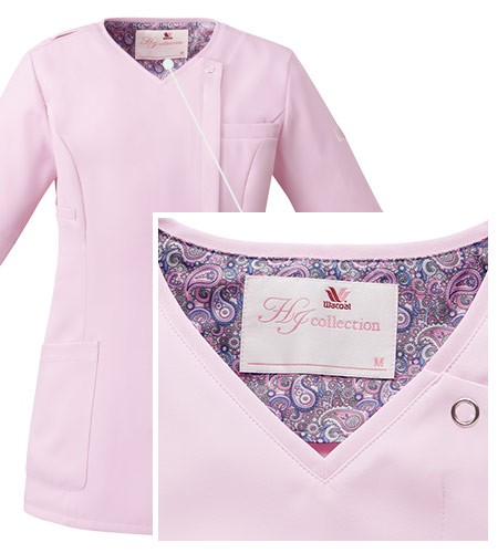 人気の定番ワコールスクラブから五分袖スクラブが仲間入りしました。五分袖になることで、腕周りが隠れよりエレガントに品よく見る効果があります。また、気になる二の腕周りをナチュラルにカバーします。袖裏と襟の見返しにはペイズリー柄の裏地でさりげないこだわり。 フロントジップの着やすさで、着脱時のメイクや髪型の乱れも起こらず、キレイに素早く着られます。