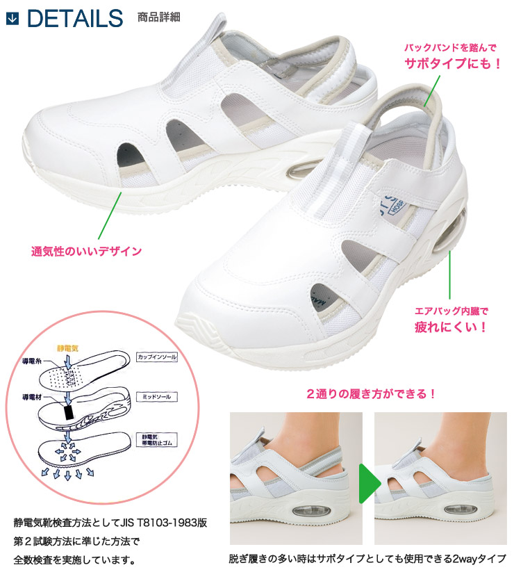 静電気帯電防止加工・抗菌防臭・エアバッグ内蔵の高機能シューズ。
