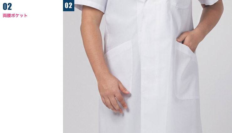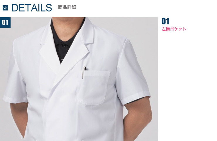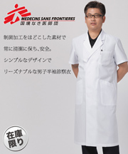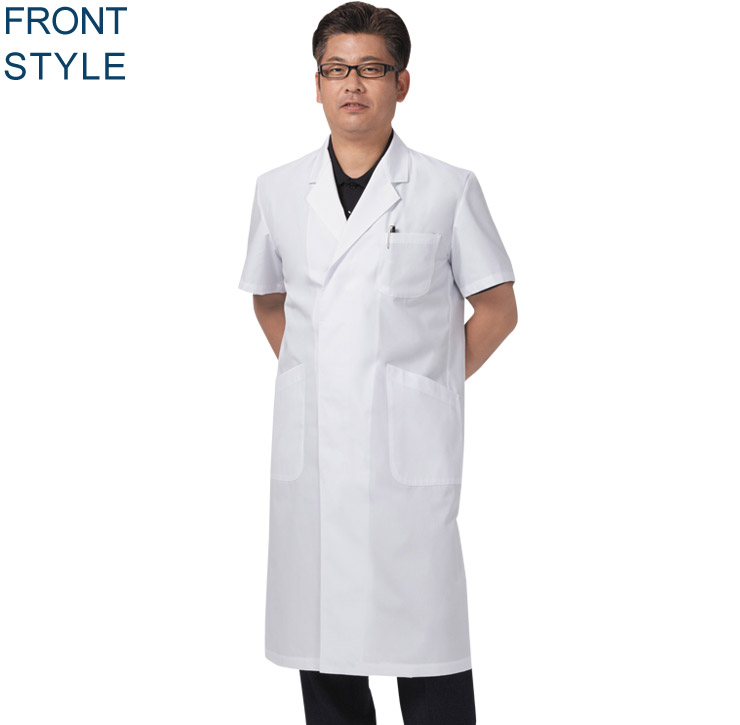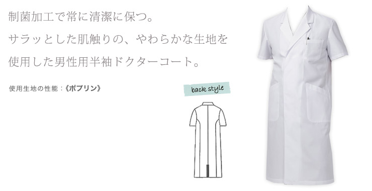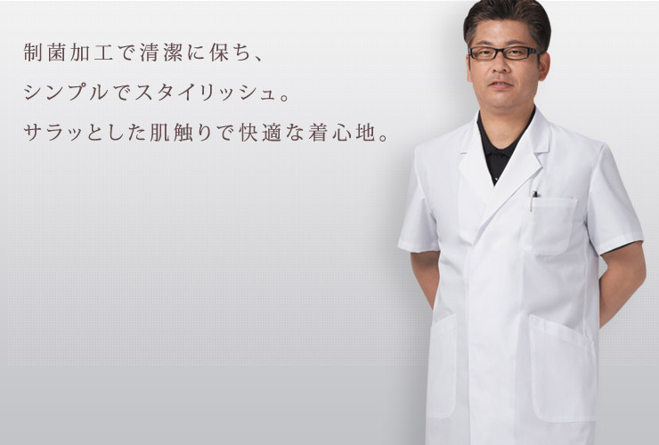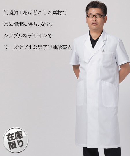 シンプルなデザインでリーズナブルな男子半袖診察衣。