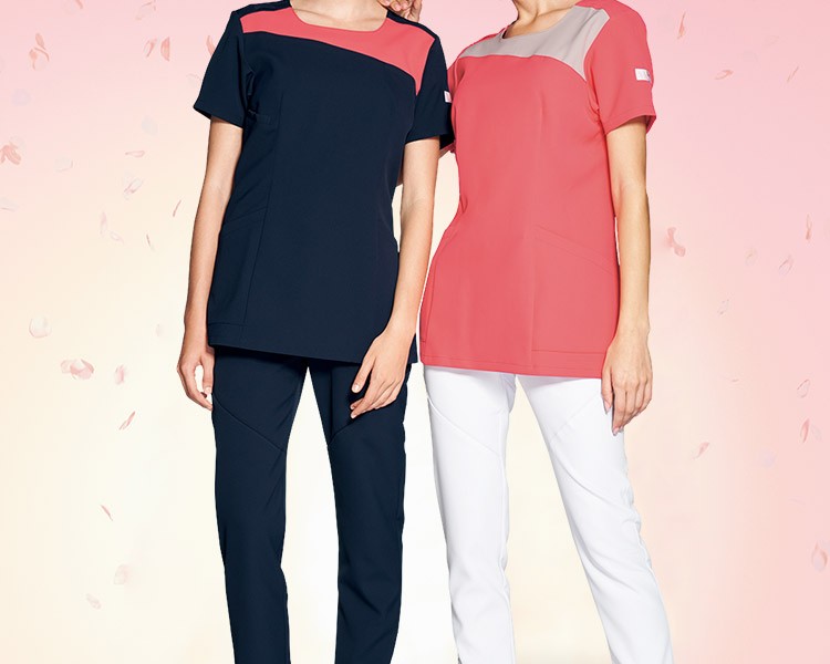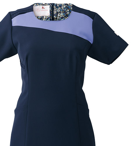 ツートンカラーがおしゃれなワコールHIコレクションのスクラブ。 斜めのカッティングは派手すぎず、地味すぎず、おしゃれ度をアップ。 ウエストが必ず細く見える、キレイなシルエットにこだわったレディーススクラブ。 屈んだり、腕を上げても下着が見えにくく、女性が安心して仕事に集中できる作りです。
