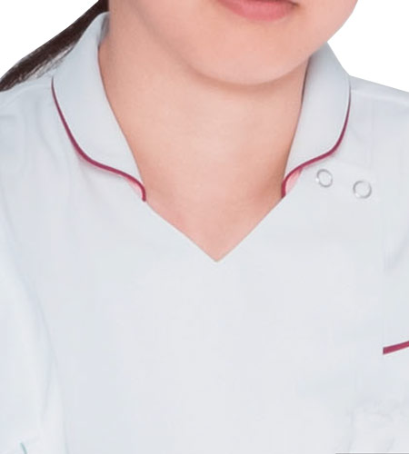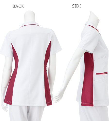 白衣とスクラブのメリットを兼ね備えたレディースハイブリッドチュニック。 Vネック+襟付きのニュースタイルチュニックで、きちんと感を出したいナースにおすすめ! デザイン性だけでなく、ストレッチ性と吸汗性・吸湿性に優れた冷感素材で忙しく動き回る医療現場でも 気持ちよく働くことができます。 フロントファスナー開きで簡単に着脱できてスピーディーに着替えられます。