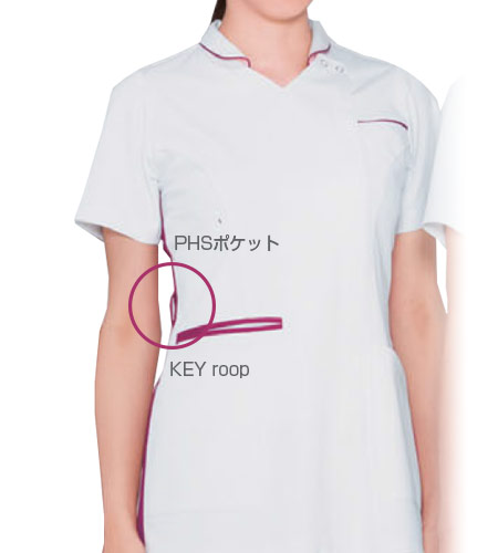 右胸下にもPHSポケット付き。首から下げたPHSを入れておくことができて、首にかかる負担を軽減。 ループには鍵などを引っ掛けておくことができて便利です。カラーバリエーションColor variation