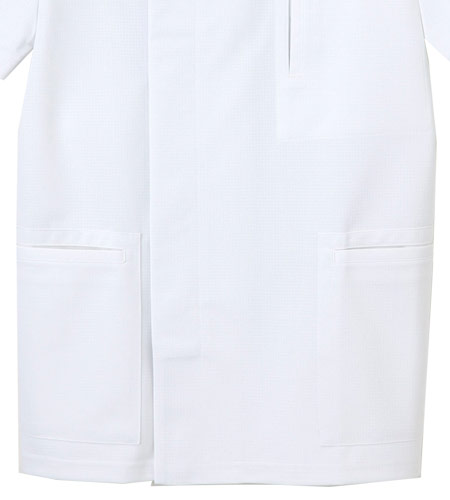 世界的なファッションデザイナー、田山淳朗が手掛ける信頼と知的さを兼ね備えたドクターウエアです。 前打ち合わせは比翼釦仕立てになっています。光の透過性を抑えた高ランダム扁平断面糸(アレニエ)を使用することにより、高い防透性を実現し、うっすらとしたシャドー柄が上品さを演出します。