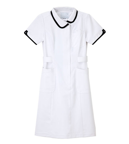 襟元と袖口のやさしい配色が、院内に癒しを与える事ができるワンピース。リット効果を出した袖口カフスは、腕の動きに美しく対応し機能的です。ウエストベルトは、ボディーラインをスマートに見せてくれます。
