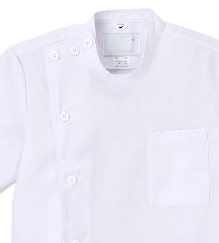 こちらの商品は右胸に前ボタンがあるため、右胸への刺しゅう加工が不可となります。 購入時は加工位置にご注意ください。