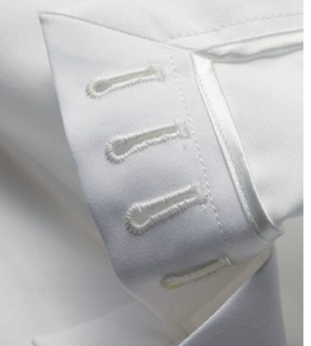 ボタンに糸足をつけ、糸をグルグルとしっかりかけ、浮かせているためにボタンがかけやすくなっています。 4D+は細部にまでこだわりと思いやりを欠くことがありません。