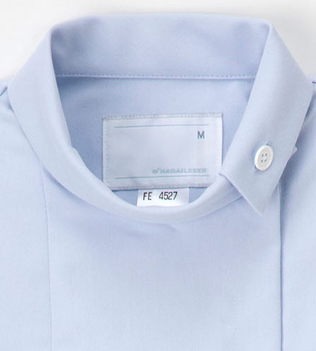 ナチュラルでソフトな風合いが特長の素材を使用。 適度な伸縮性が動きやすさをもたらせています。 フルダル糸使いのため防透性があり、インナーの透ける心配をせず安心して着用可能。 特殊仕上により吸水、防汚効果を付加しています。 業務用洗濯にも耐えうる形態安定素材です。