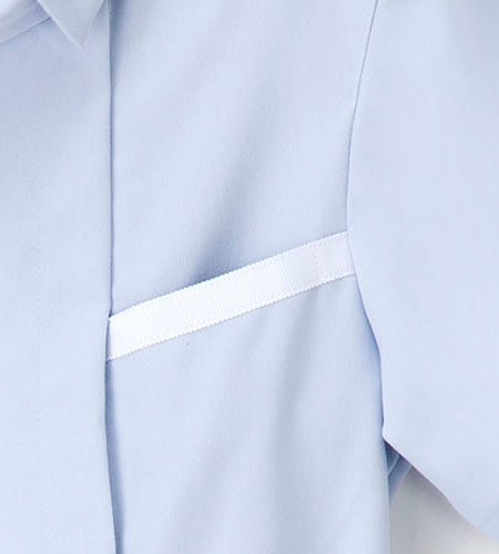 ロールカラーの優しい襟元が柔らかな風合いの素材とマッチして患者さんの心を和らげます。胸元のグログランテープ