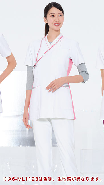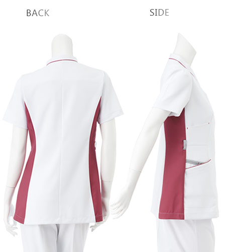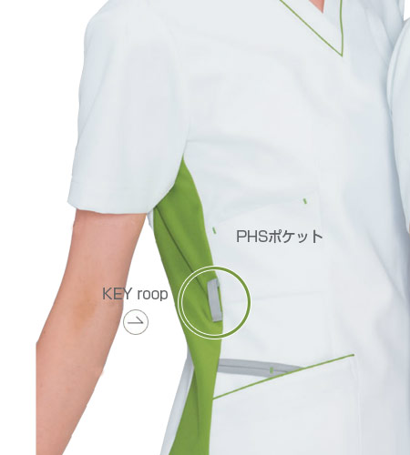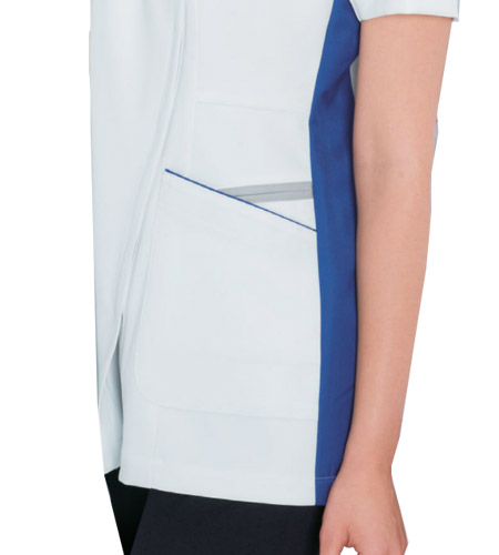 ナガイレーベンの人気ビタミンシリーズの白衣! 透けにくい素材を使用しているため、インナーを気にせず着用でき、毎日の仕事が楽しくなります。 美しくシャープなシルエットに見える明るいビタミンカラーを両サイド部分に使用し、病院全体を元気で満たします。素材は伸縮性抜群で軽くとても快適です。ス右脇にはPHS用のポケットと鍵などを掛けられるループが付いてます。