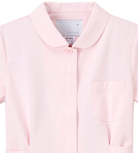 襟元はおしゃれな丸襟で女性らしさを感じられます。左胸ポケット付き。両腰ポケット