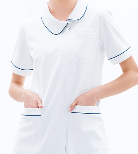 カラーパイピングがアクセントとなるポケットは医療現場に必要な道具を収納できます。
