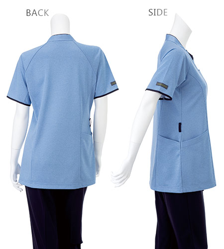 医療関係は勿論、介護やリハビリ、マッサージ系にもおすすめの快適ニットシャツ。エアーアームカット®を採用した非常に動きやすいデザインで、前ファスナーで羽織って着られるので着脱も簡単です。スッキリとしたスクラブタイプの襟に、胸元が見えにくいマチ付きデザインも嬉しい。