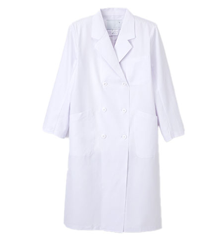 信頼感あふれるナガイレーベンのダブルタイプのレディース診察衣、ドクターコート白衣。