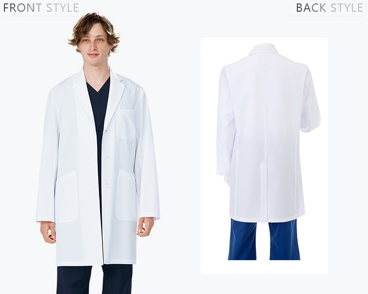 形態安定性に優れたKEX素材。軽やかなショート丈のメンズ診察衣。