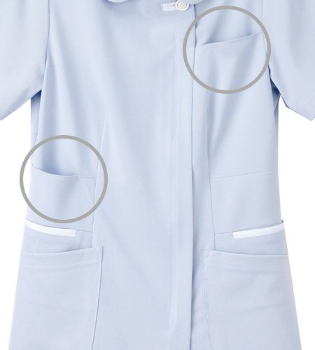 左胸と右胸下にもPHSポケット付き。首から下げたPHSを入れておくことができて、首にかかる負担を軽減。カラーバリエーションColor variation