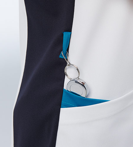 - 左胸ポケット(PHSポケット付き)、両腰二重ポケット、右脇ループ付き、エアーアームカット®