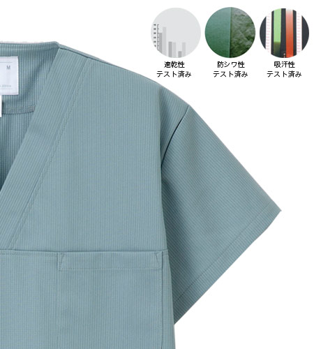制菌加工、制電、吸水、防汚効果のある高機能素材を使用。 伸縮性のあるニット素材で、体の動きがスムーズに行えます。
