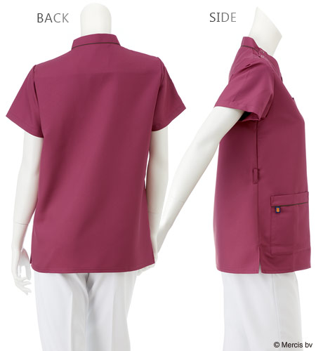 襟元とポケット口にコードパイピングを挟み込み、デザインのアクセントに。 胸のかわいい刺しゅうはカラー毎に異なるバリエーションを楽しめます。両脇ポケット