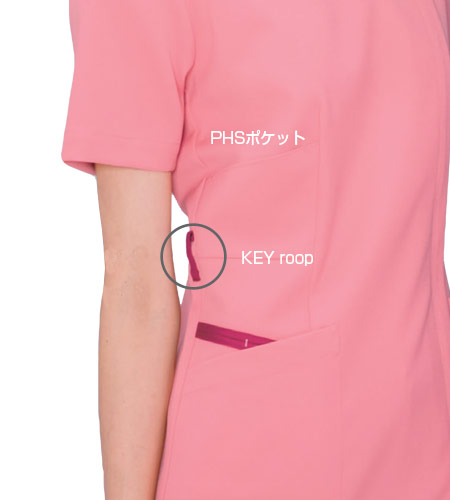 右胸下にもPHSポケット付き。首から下げたPHSを入れておくことができて、首にかかる負担を軽減。 ループには鍵などを引っ掛けておくことができて便利です。カラーバリエーションColor variation