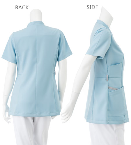 チュニックを融合させたニュースタイルのレディーススクラブ。 ストラップが首に当たりにくい衿元がポイント。フロントファスナー開きで着脱楽々。 着替える際の化粧や髪型が崩れるわずらわしさを解消しました。 ストレッチ性のある素材を使用しているため、優れた運動機能性と美しいシルエットを両立。 動きやすさと女性らしいラインで院内が明るくなります。