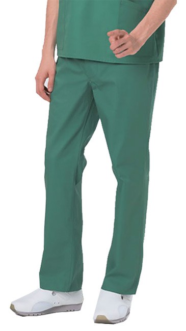 ナガイレーベンの動きやすいメンズパンツ。前開き仕様でウエストはひもにより調節可能です。しっかりとした綾組織で張り腰があり、安定感のある素材を使用し、綿35%により吸汗性があります。