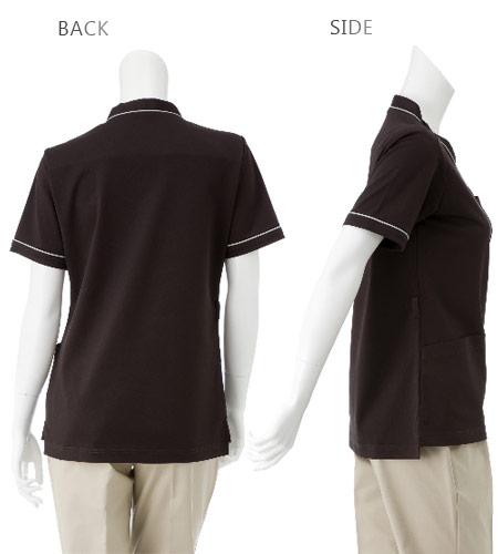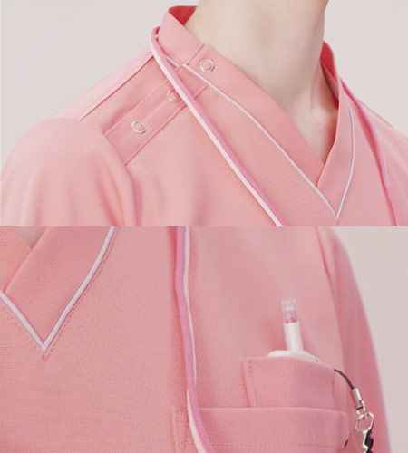 動きやすいストレッチ性と接触冷感機能を併せ持った快適な着心地のニット素材。右肩のスナップボタン開閉で、よりスピーディーに着脱出来ます。アクセントにパイピングをあしらったおしゃれなデザインが男女ともに人気のスクラブです。