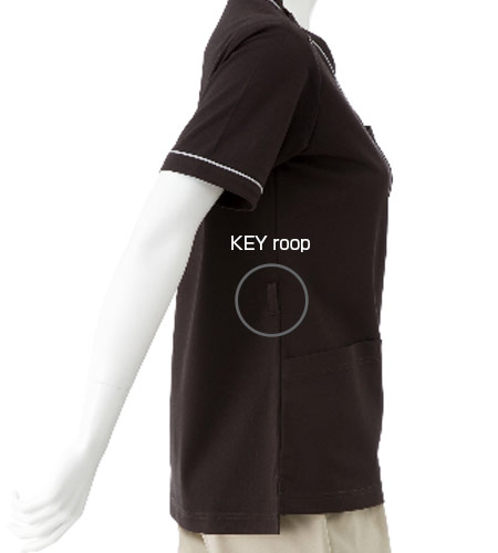 ストラップが首に当たりにくい襟元で、首回りの負担を軽減します。 左胸ポケットにはPHSポケット付き。 また右肩のスナップボタン開閉で、よりスピーディーに着脱出来ます。キーループ
