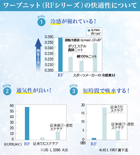 - 制菌加工、制電、接触冷感、ストレッチ、吸水、防汚効果
