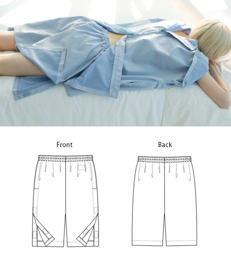 - 吸汗、両肩・両脇・前中心マジックテープで開閉、後ろ中心上下に開くファスナー付き