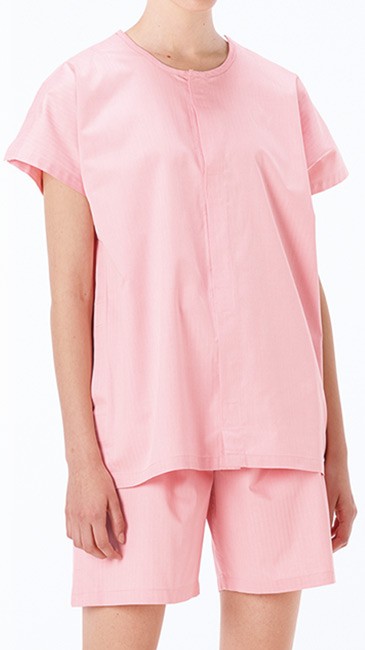 前、肩、脇、背中が開く仕様の鍼灸ワンピース。様々な部位の施術を行う際にストレスがありません。素材は綿の混率が高いため吸汗性に優れ快適な着心地です。