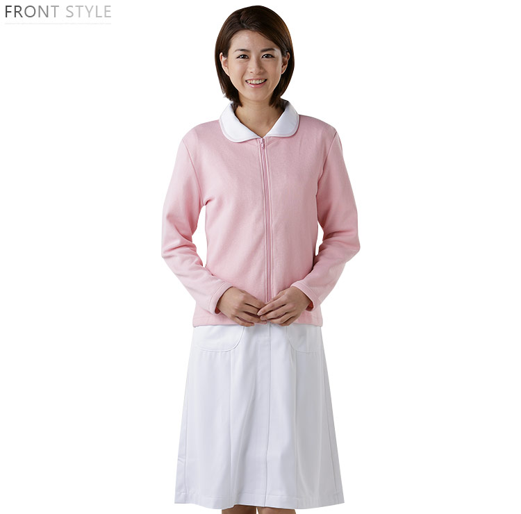 柔らか素材の人気カーディガンに、便利な両開きのジップタイプが登場。アクティブな印象の羽織りはクリニック・病院の受付から介護施設まで、多目的に着用できます。