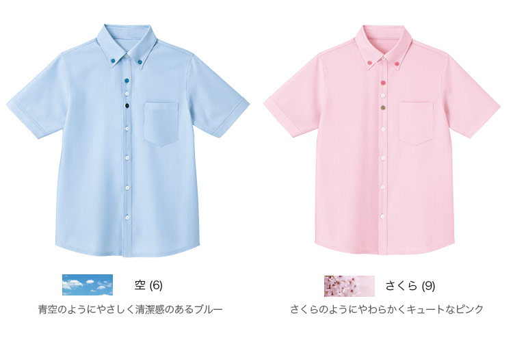 やさしくきれいな発色が魅力の半袖ニットシャツ。動いても襟が乱れないボタンダウンは、きちんと感をキープし好印象を与えます。ボディラインを目立たせず、ほどよいハリ感のある生地を使用。下着が透けにくく安心して着用できます。