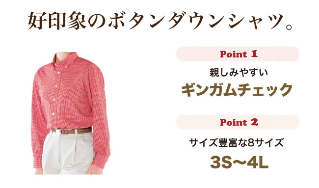 ギンガムチェックボタンダウン長袖シャツ[男女兼用](01-43604)