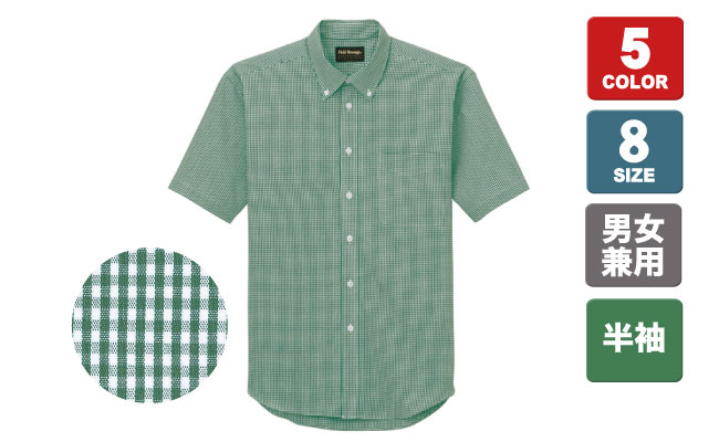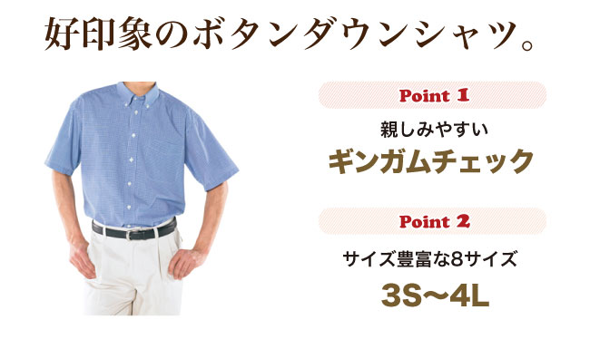ギンガムチェックボタンダウン半袖シャツ[男女兼用](01-43614)