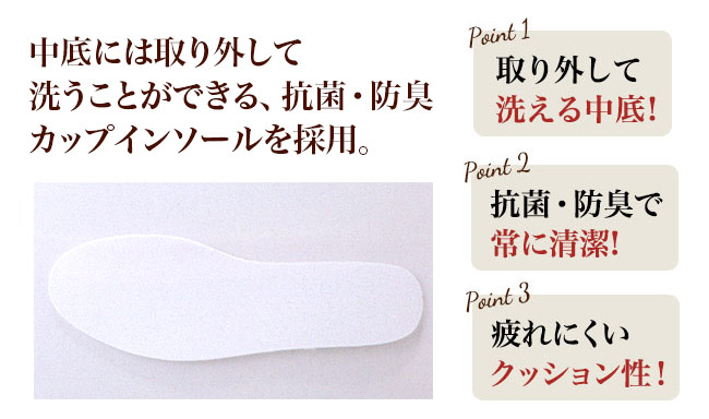 抗菌防臭中底・耐油性ゴム底 - 機能