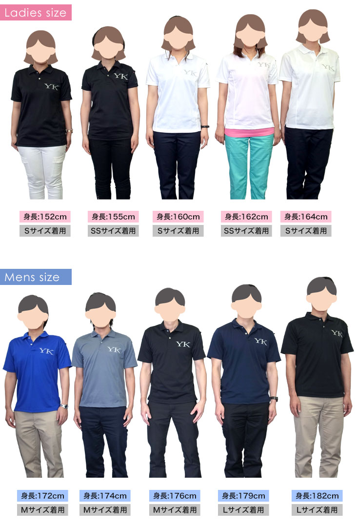 SS・Sサイズは、レディースジャストフィットシルエットを採用した女性用サイズとなっています。美しいシルエットのため、男女兼用ものとは違った着こなしができます。
