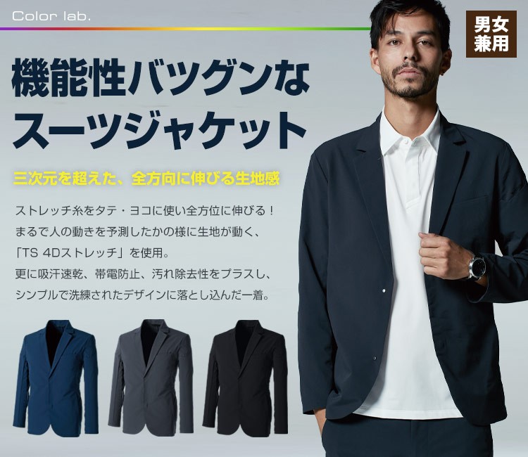 汚れに強く、ご自宅で簡単に洗えるスーツジャケット。全方位に伸びる伸縮性と軽さで、抜群の動きやすさが得られます。