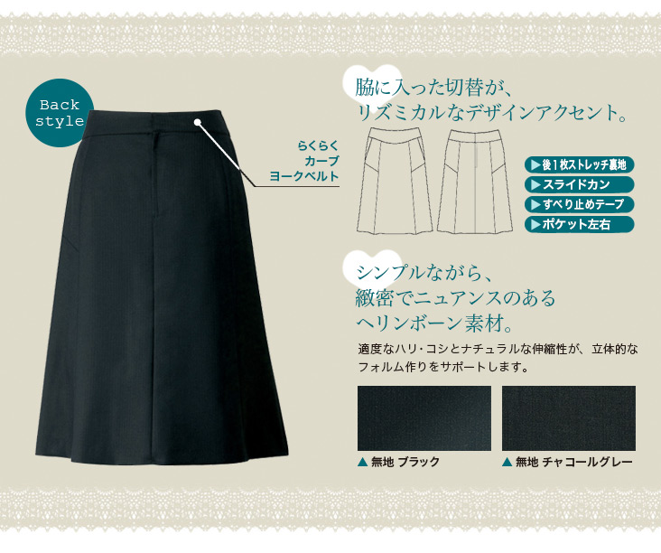 着る人の魅力を引き出すALPHAPIERのセミフレアスカート。ナチュラルな伸縮性が、立体的なフォルム作りをサポートします。