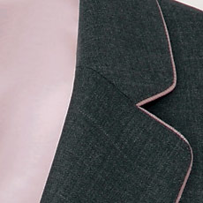 チャコールグレーにはピンクのパイピング。裏地も同系色。