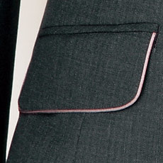 カラーパイピングがアクセントのフラップ付き左右ポケット。